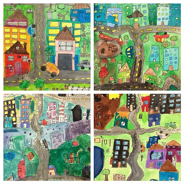 Folk Art Cityscapes by Ms. Rotwein's students.